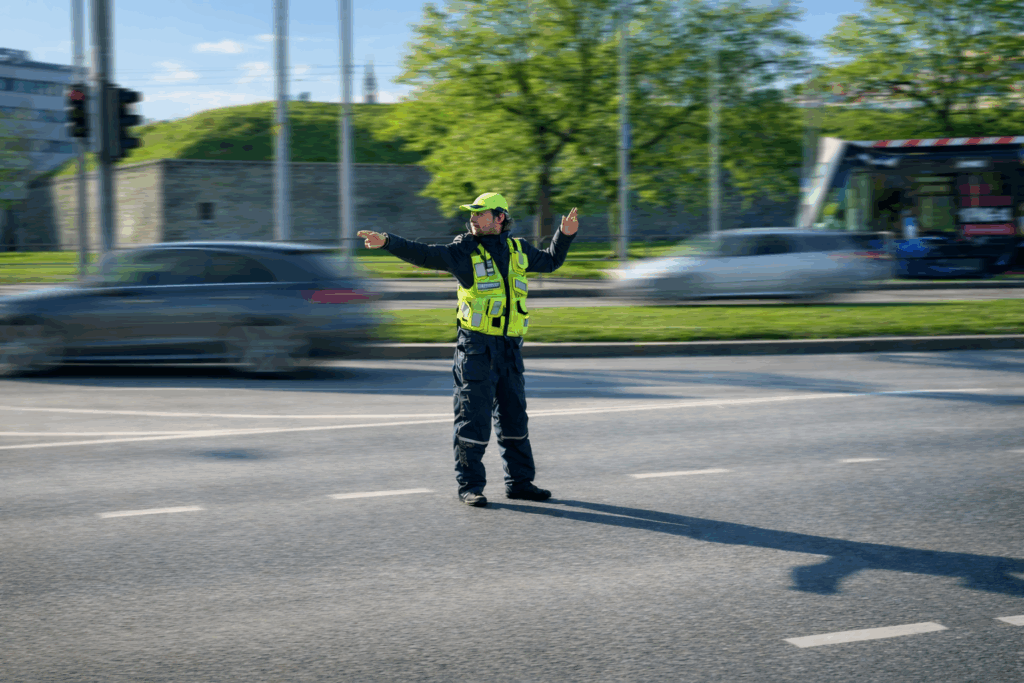 Kindlustab sujuva liikluse olukorras, kus ajutine liikluskorraldus nõuab juhendamist.